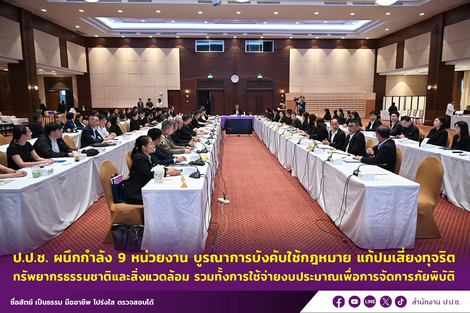 ป.ป.ช. ผนึกกำลัง 9 หน่วยงาน บูรณาการบังคับใช้กฎหมาย แก้ปมเสี่ยงทุจริตทรัพยากรธรรมชาติและสิ่งแวดล้อม รวมทั้งการใช้จ่ายงบประมาณเพื่อการจัดการภัยพิบัติ วันนี้ (10 เมษายน 2569) นายสุรพงษ์ อินทรถาวร เลขาธิการคณะกรรมการ ป.ป.ช. ในฐานะโฆษกสำนักงาน ป...