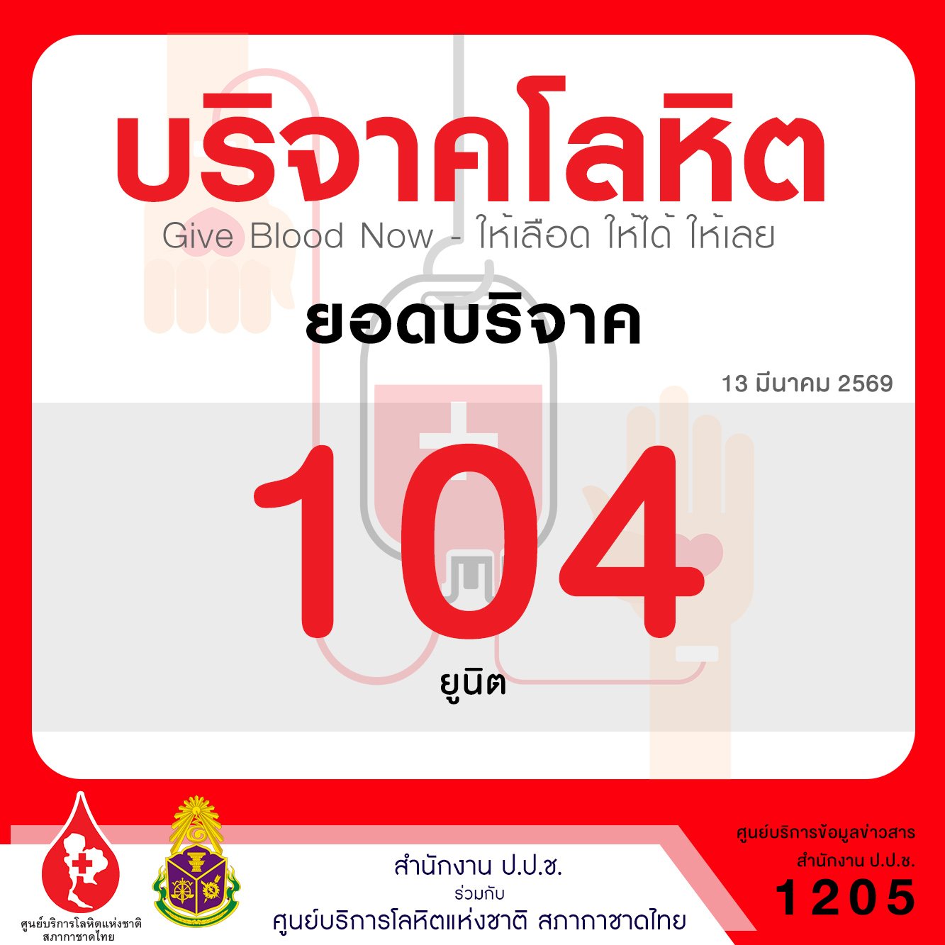 โดยโลหิตที่ได้รับบริจาคในครั้งนี้มีจำนวน 104 ยูนิต