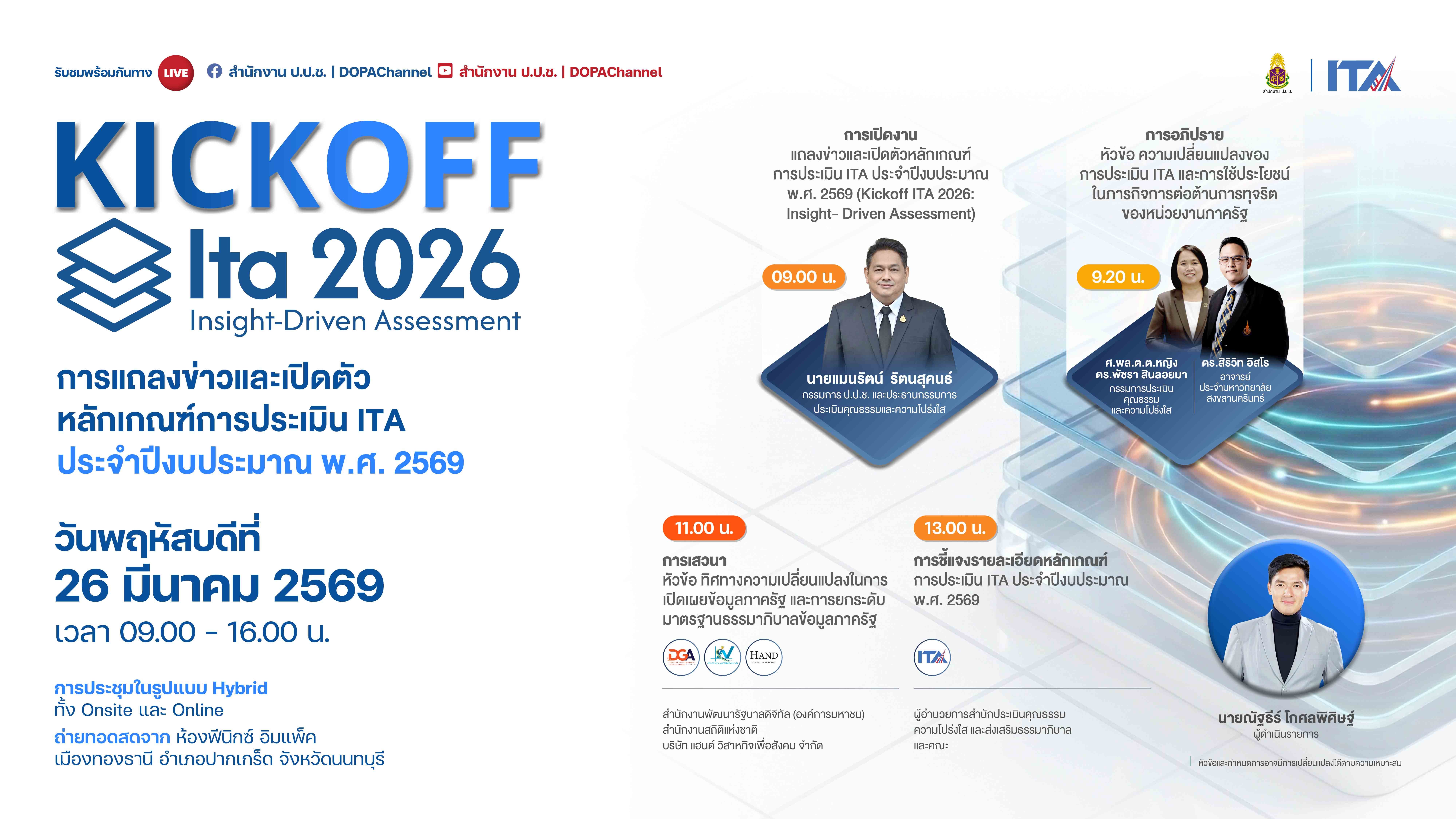 ป.ป.ช. เตรียมจัดแถลงข่าวเปิดตัวหลักเกณฑ์การประเมิน ITA 2569 ในงาน "Kickoff ITA 2026: Insight-Driven Assessment"