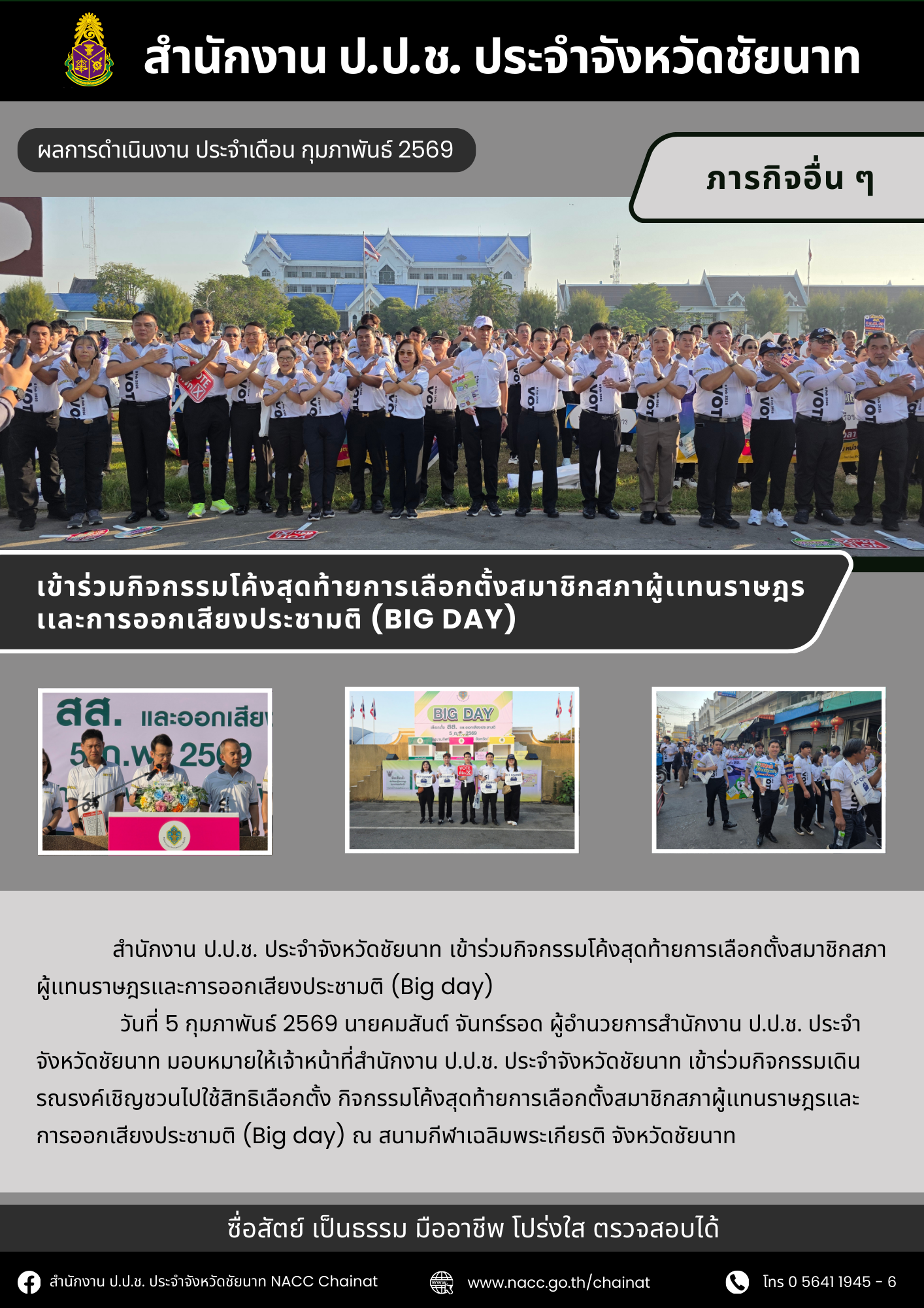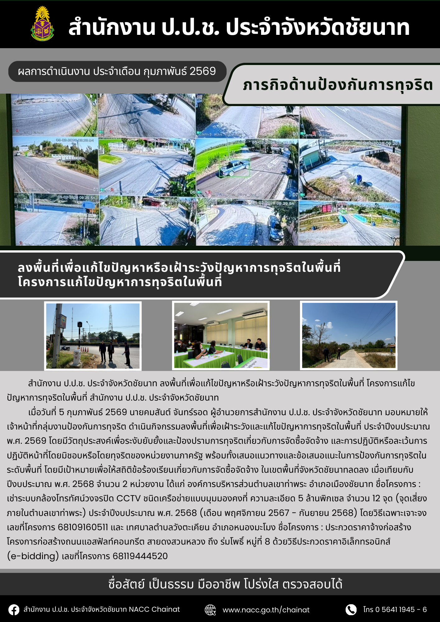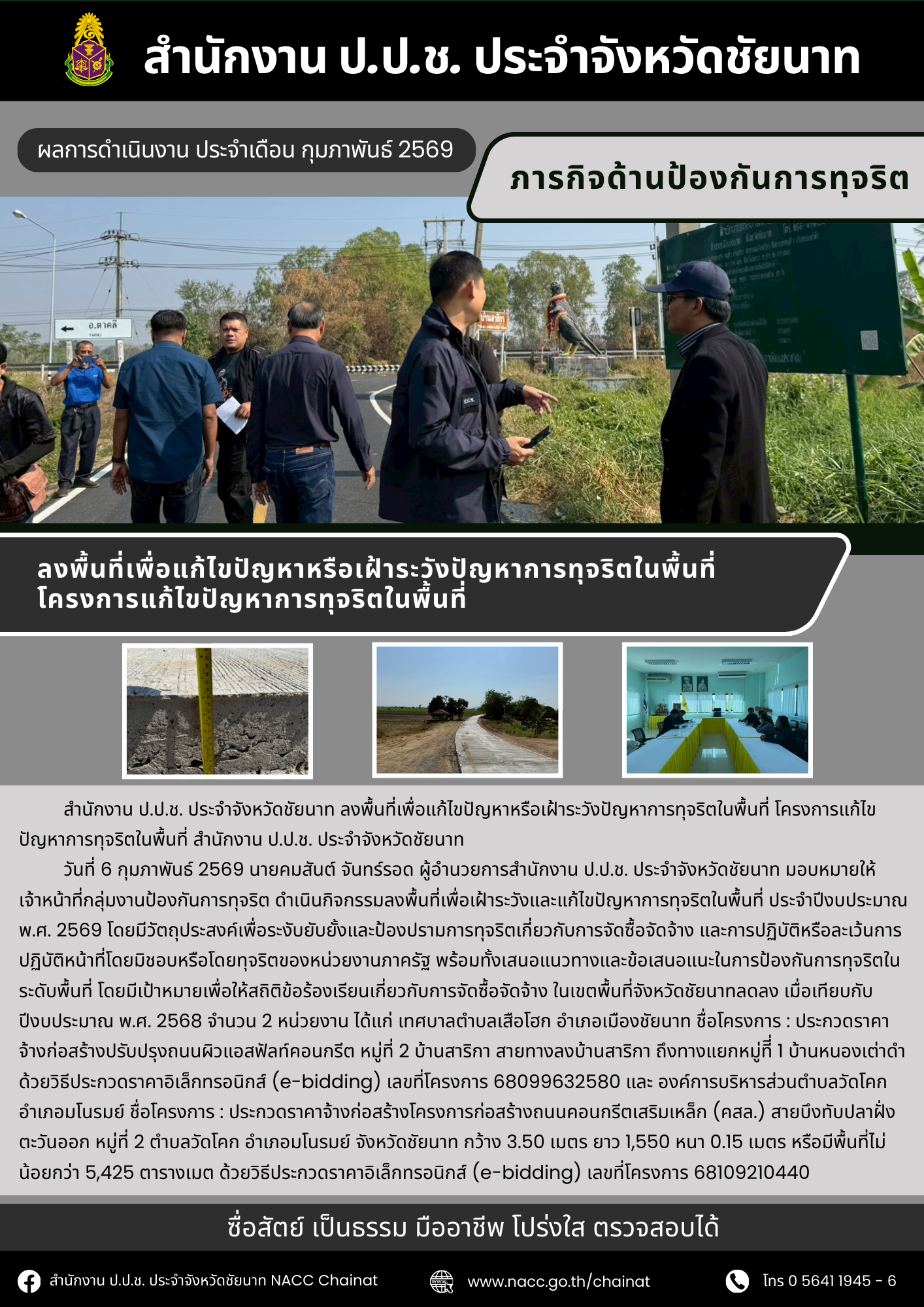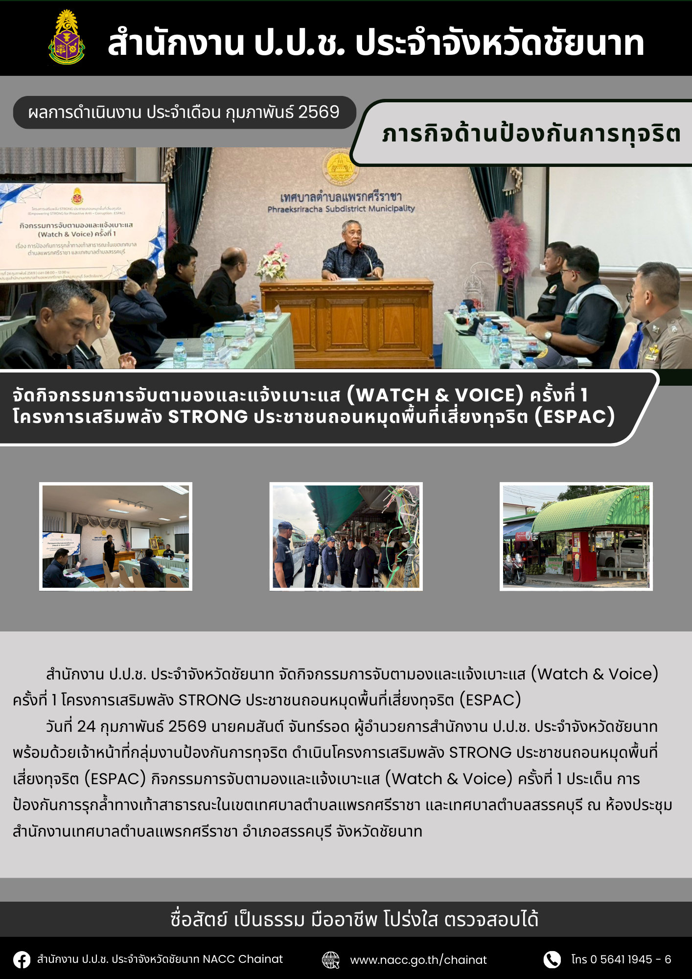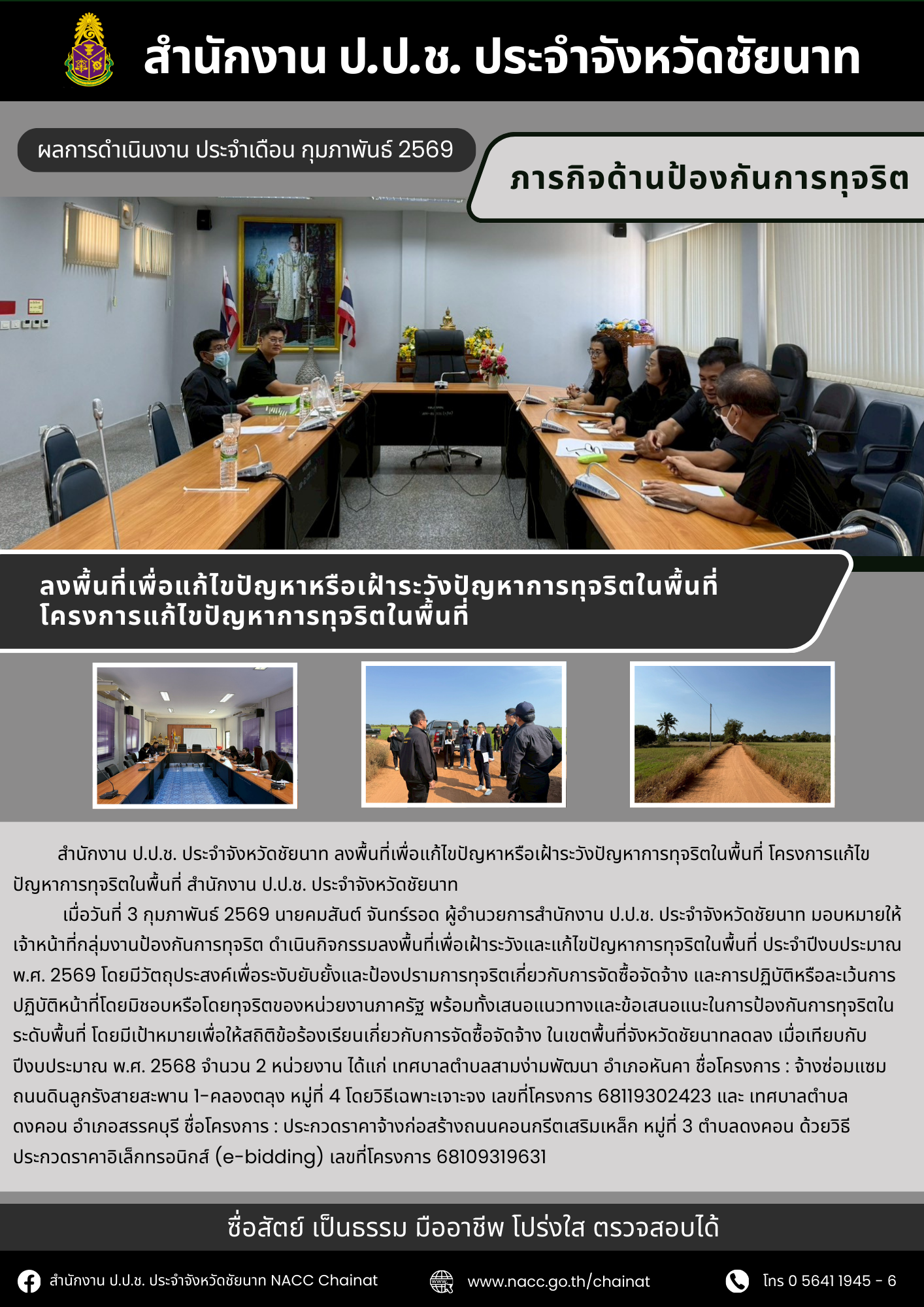 สำนักงาน ป.ป.ช. ประจำจังหวัดชัยนาท แถลงสรุปผลการดำเนินงานเดือนมีนาคม 2569----------------------------------สำนักงาน ป.ป.ช. ประจำจังหวัดชัยนาทที่อยู่ : 495 ม.3 ตำบลชัยนาท อำเภอเมืองชัยนาท จังหวัดชัยนาท 17000โทร. : 0 5641 1945-7เว็บไซต์ : nacc.go.th/ch...