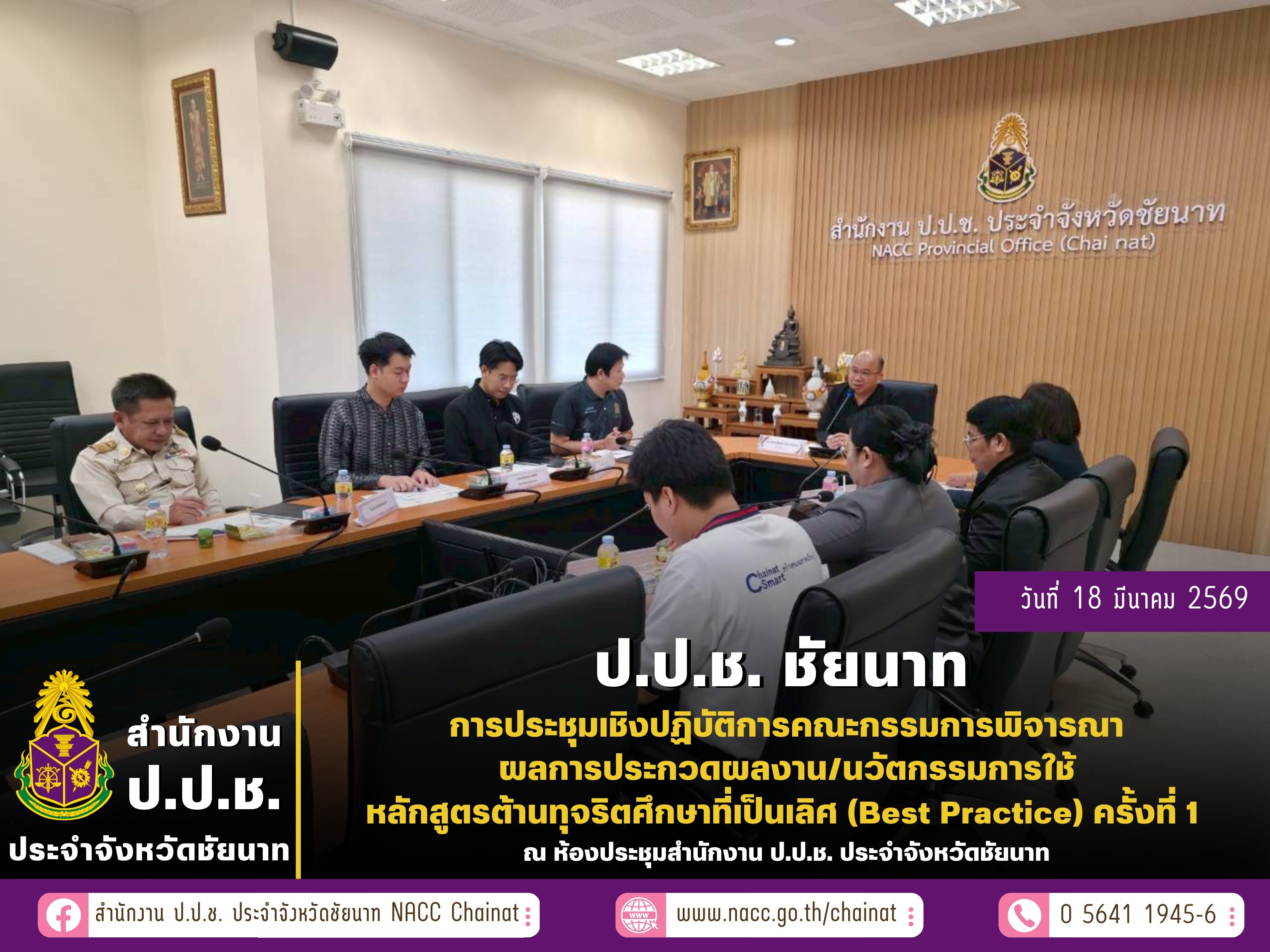 สำนักงาน ป.ป.ช. ประจำจังหวัดชัยนาท จัดประชุมเชิงปฏิบัติการคณะกรรมการพิจารณาผลการประกวดผลงาน/นวัตกรรมการใช้หลักสูตรต้านทุจริตศึกษาที่เป็นเลิศ (Best Practice) ครั้งที่ 1 โครงการพัฒนาและขับเคลื่อนหลักสูตรต้านทุจริตศึกษา