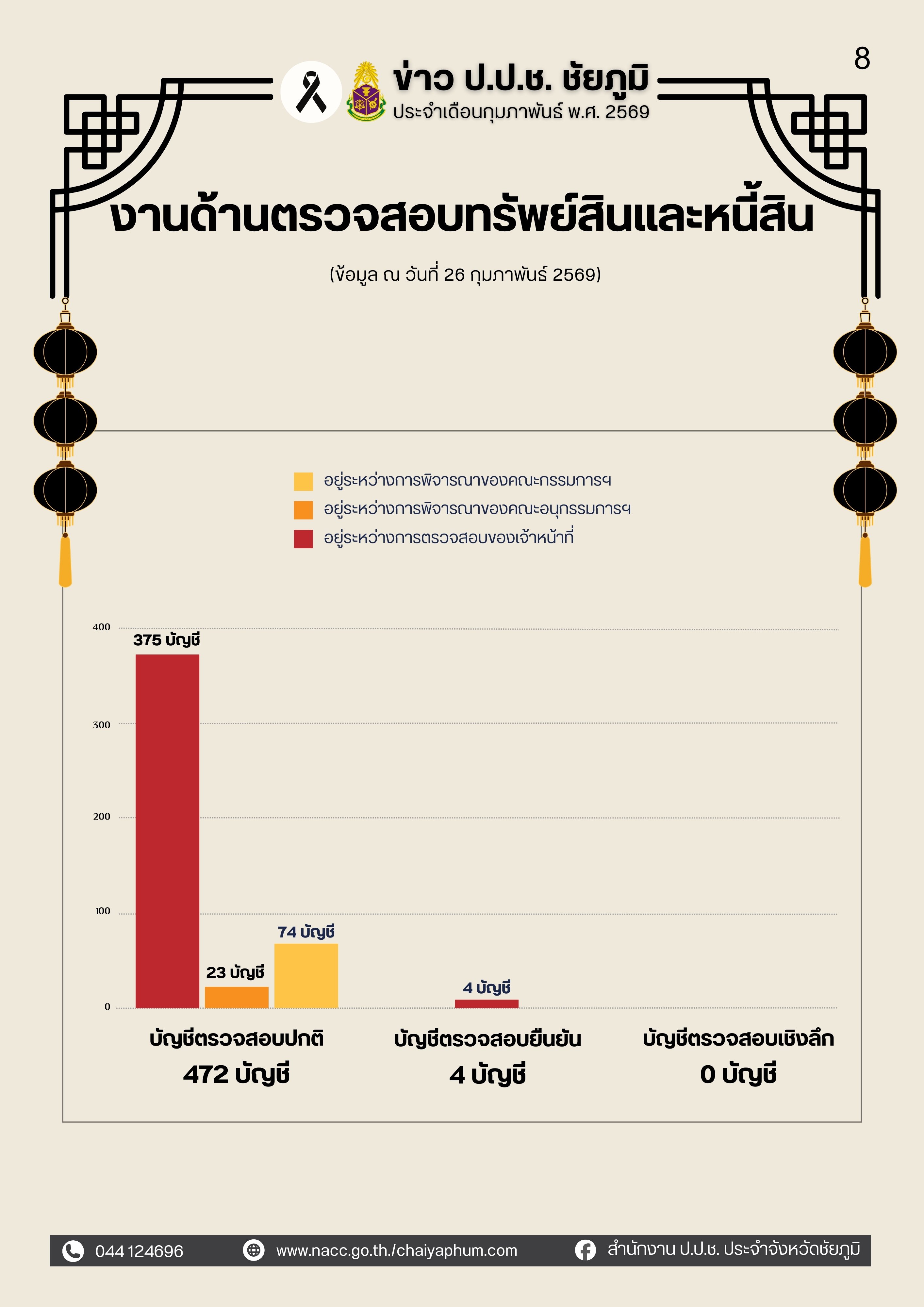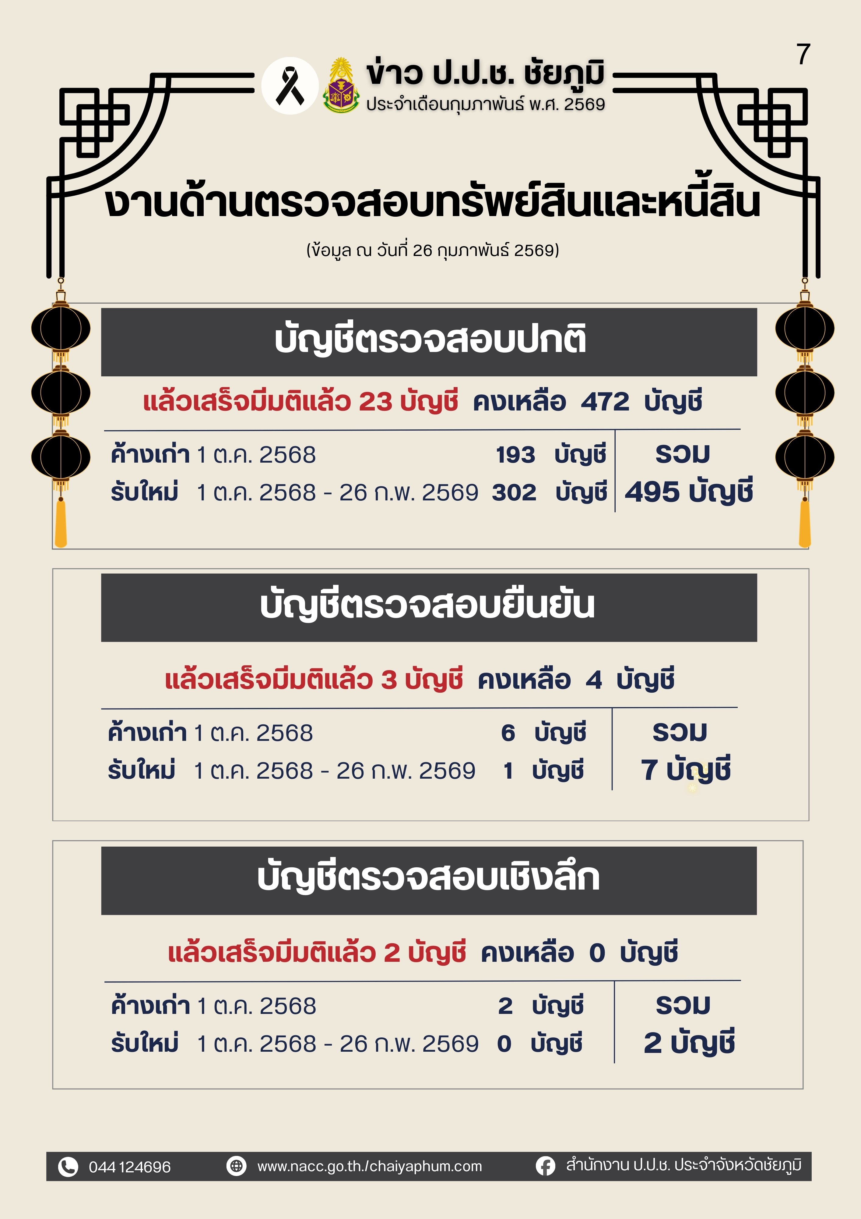 ผลงานด้านตรวจสอบทรัพย์สินและหนี้สิน ประจำเดือนกุมภาพันธ์ 2569