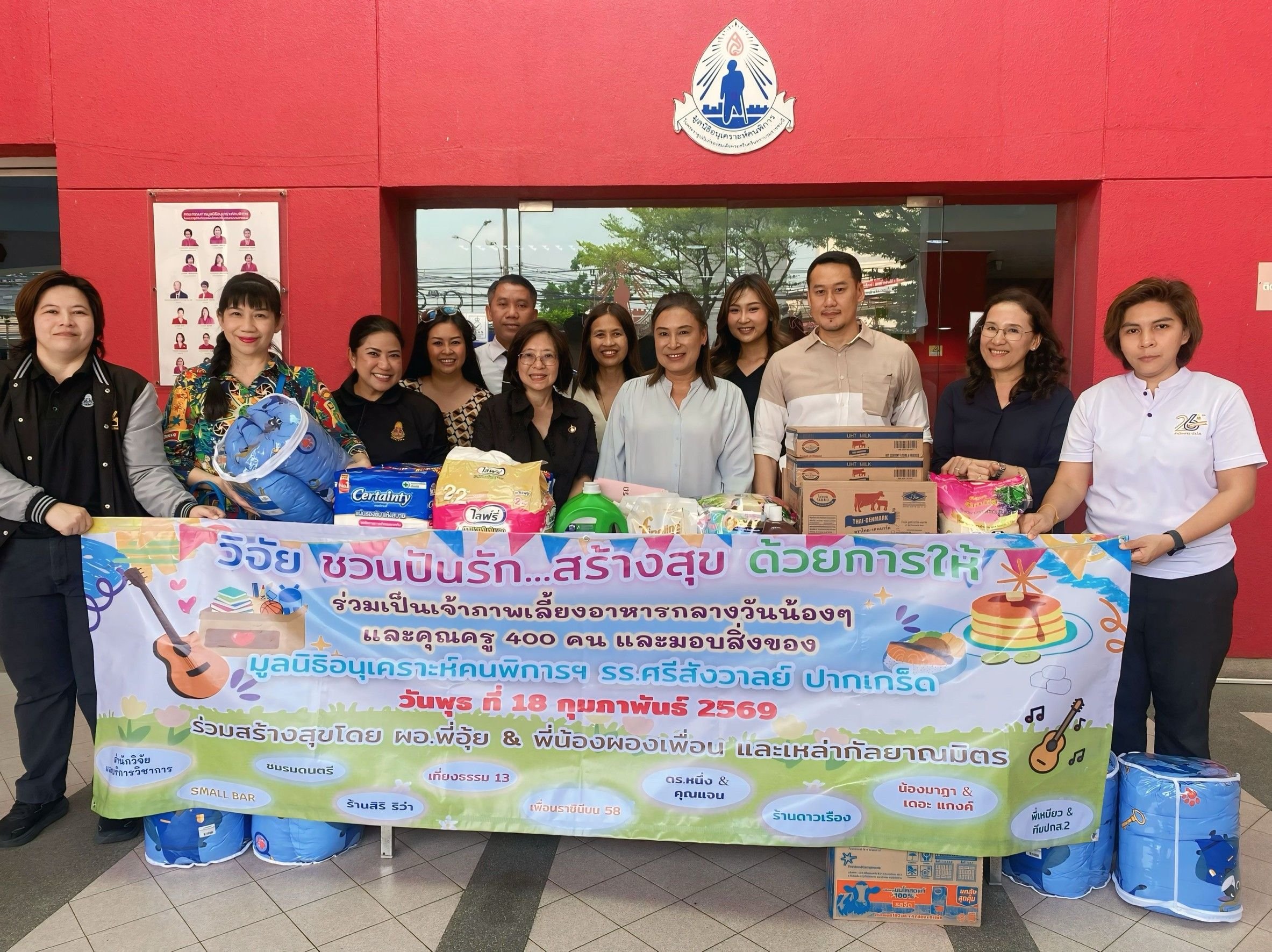 วันที่ 18 กุมภาพันธ์ 2569 นางสาวนภวรรณ ชลพินทุ์วิสุทธิ์ ผู้อำนวยการสำนักสื่อสารองค์กร และเจ้าหน้าที่สำนักสื่อสารองค์ ร่วมกับสำนักวิจัยและบริการวิชาการด้านการป้องกันและปราบปรามการทุจริต จัดกิจกรรมร่วมปันสุข บริจาคเลี้ยงอาหารกลางวันและมอบสิ่งของที่จำเป็นให้กับน้องๆ ณ โรงเรียนศรีสังวาลย์ ของมูลนิธิอนุเคราะห์คนพิการในพระราชูปถัมภ์ อำเภอปากเกร็ด จังหวัดนนทบุรี