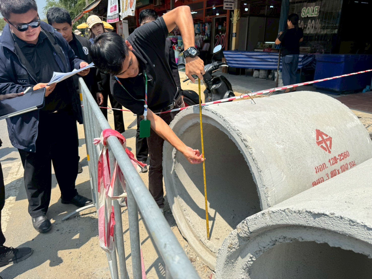 เมื่อวันที่ 7 เมษายน 2569 นางสาวลัดดา เดือนสว่าง ผู้อำนวยการสำนักมาตรการป้องกันการทุจริต มอบหมายให้ นายกฤตชัย พรมวัน ผู้อำนวยการกลุ่มพัฒนาระบบเทคโนโลยีสารสนเทศเพื่อเฝ้าระวังและป้องปรามการทุจริต พร้อมด้วยเจ้าหน้าที่สำนักมาตรการป้องกันการทุจริต สำนักงาน ป.ป.ช. ลงพื้นที่ตามที่ได้รับแจ้งเบาะแสจาก Facebook Fanpage “ปฏิบัติการหมาเฝ้าบ้าน” ซึ่งระบุว่า “เกร้าท์ท่อระดับน้ำงานเขตบางกะปิ กทม. 8.8 ล้านบาท นวมินทร์ ซอย 8 เทลีนในน้ำ วางท่อในน้ำ เกร้าท์ท่อไม่สุด เกร้าท์แค่ระดับน้ำ อิงตามแบบ มน.-04 กำหนดให้สูบน้ำออกจากร่องให้แห้งก่อน แล้วปรับพื้นดิน รองทราย เทคอนกรีตหยาบ แล้ววางท่อ ล็อกท่อ เกร้าท์ท่อทั้งในและนอกให้รอบจนสุดพื้น ลงทรายถม” นั้น
