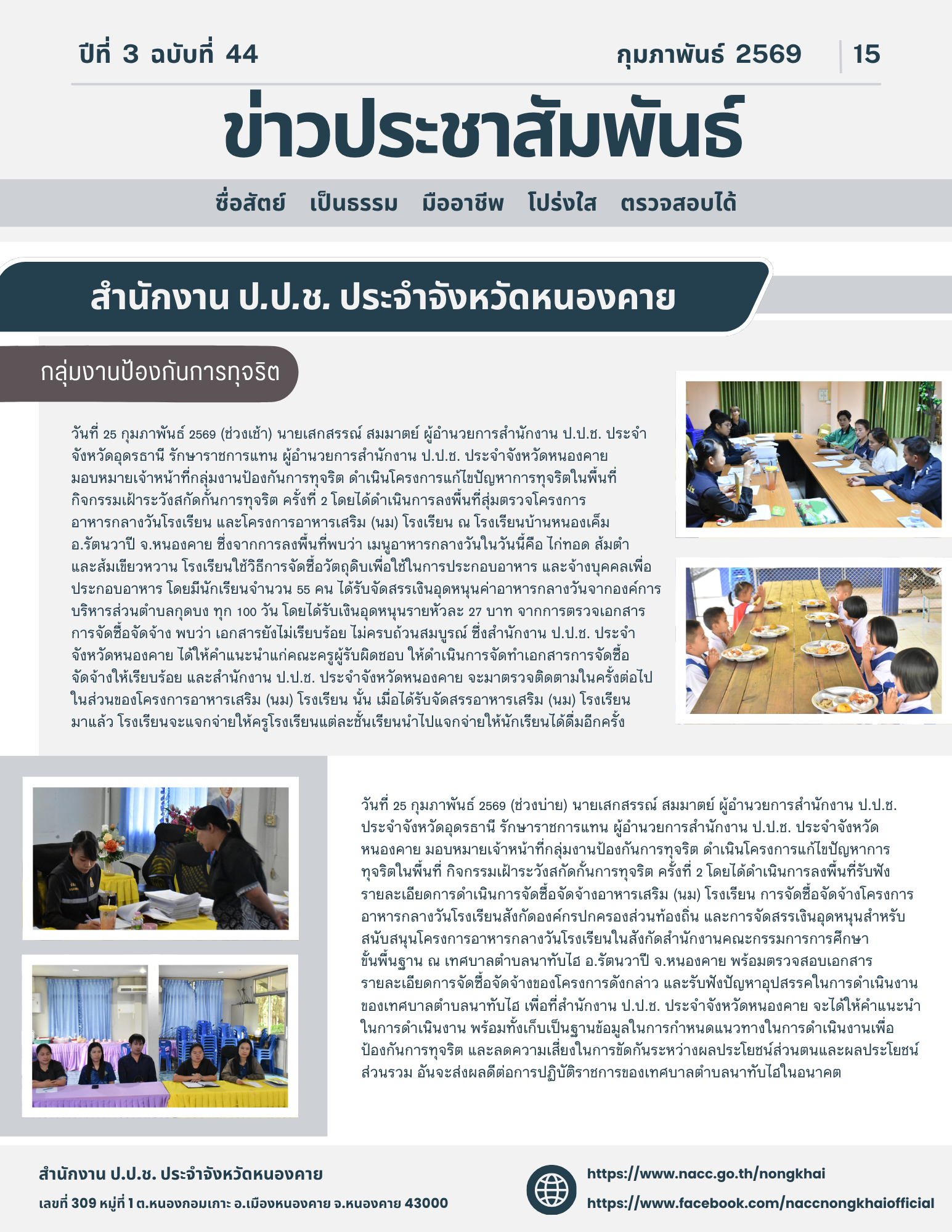 สำนักงาน ป.ป.ช. ประจำจังหวัดหนองคาย ลงพื้นที่รับทราบข้อเท็จจริงตามที่ศูนย์ป้องปรามการทุจริตแห่งชาติ สำนักงาน ป.ป.ช. (Corruption Deterrence Center : CDC) แจ้งข้อมูล เบาะแสในพื้นที่จังหวัดหนองคาย ตามที่ปรากฏในสื่ออออนไลน์ Facebook เพจข่าวออนไลน์หนองคา...